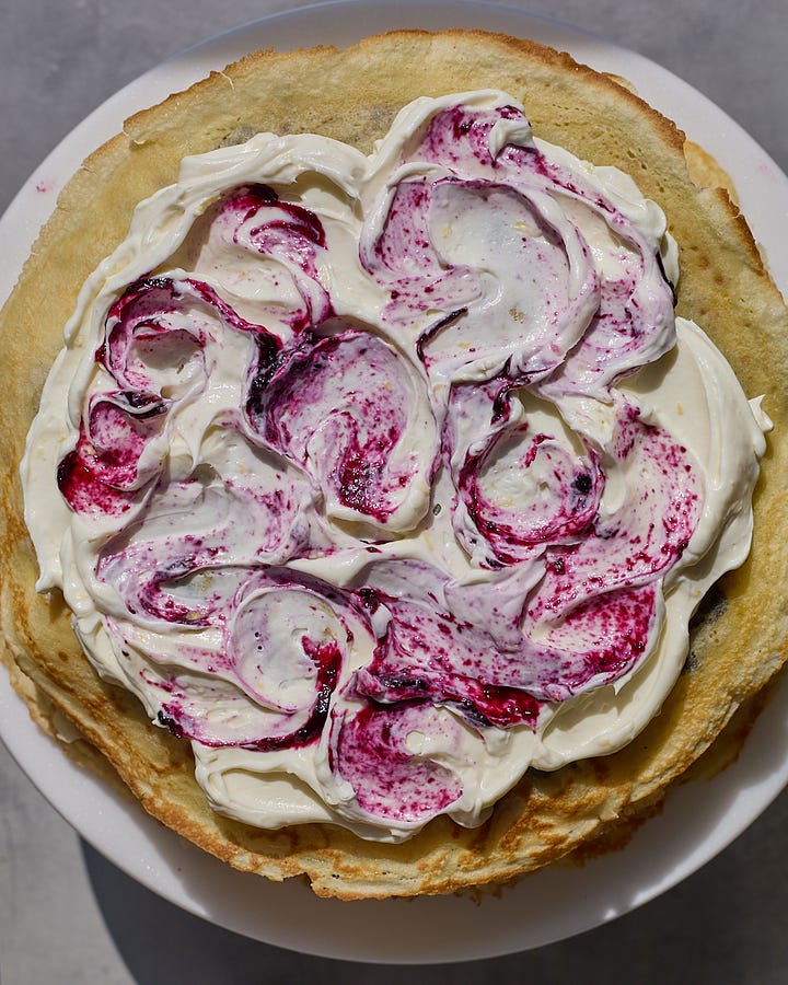 Blueberry Blintz Crepe Cake