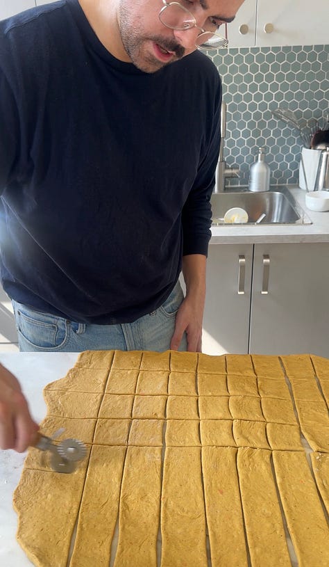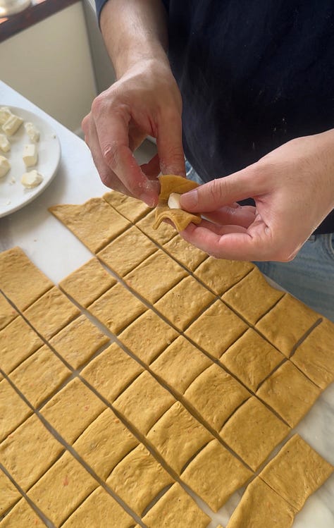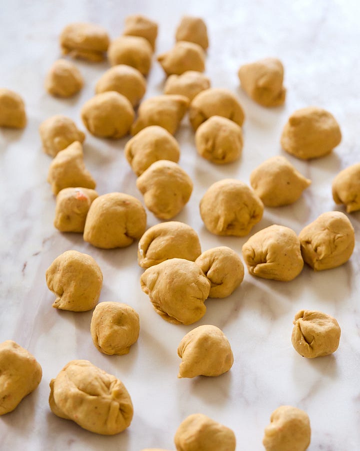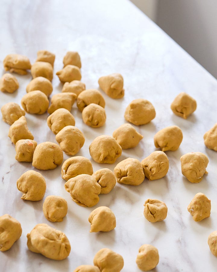 The recipe starts off with pureed cooked carrots folded into a supple, enriched dough. The carrots, along with some warms spices, lend it that traditional carrot cake flavor and color. Then there’s the cinnamon sugar coating between each piece of dough, as well as the morsels of cream cheese that are wrapped inside them, that really make this showstopper sing.