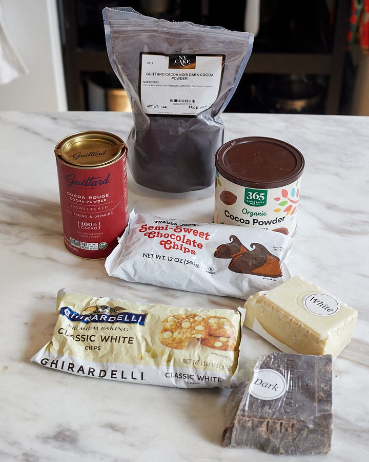 If you’re making ganache or tempering chocolate — or in any recipe where chocolate is the star — go for the good stuff. It melts better, tastes better, and is less prone to seizing and splitting. For cookie mix-ins, and I can’t believe I’m saying this, it’s okay to use chips (you just won’t get pretty, tasty puddles of chocolate and the cookies won’t spread as much.) I recommend finding bulk chocolate in blocks if you can — it’s typically less expensive than buying the fancy bars or wafers.